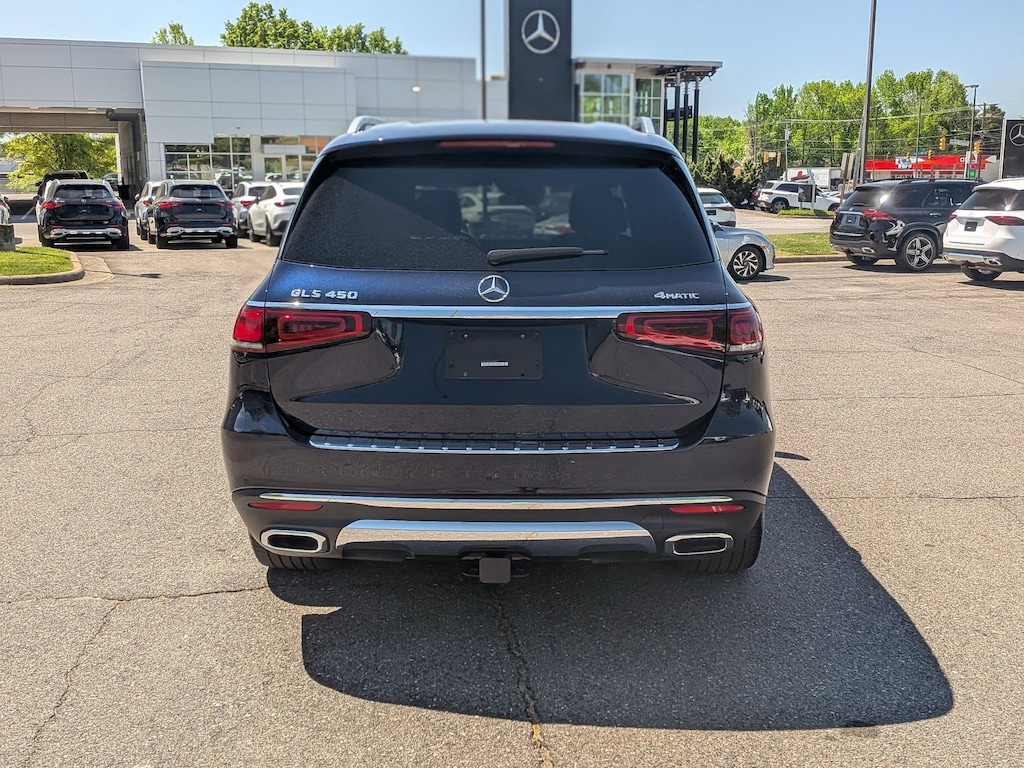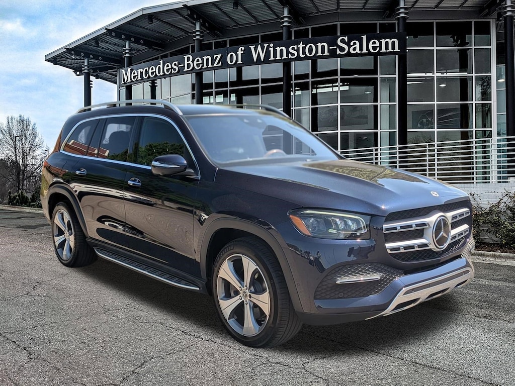 Mercedes-Benz of Winston Salem is proud to present you with another True Market Priced Pre-Owned Vehicle. This 2022 Mercedes-Benz GLS GLS 450 is loaded with the following Factory Options:13 Speakers, 3.27 Axle Ratio, 3rd row seats: split-bench, 4-Wheel Disc Brakes, 7-Seat Configuration, ABS brakes, Active Brake Assist w/Cross-Traffic Function, Adaptive suspension, Air Conditioning, Alloy wheels, AM/FM radio: SiriusXM, Apple CarPlay®/Android Auto®, Auto High-beam Headlights, Auto tilt-away steering wheel, Auto-dimming door mirrors, Auto-dimming Rear-View mirror, Auto-leveling suspension, Automatic temperature control, Brake assist, Bumpers: body-color, Child-Seat-Sensing Airbag, Compass, Delay-off headlights, Driver door bin, Driver vanity mirror, Dual front impact airbags, Dual front side impact airbags, Electronic Stability Control, Emergency communication system: eCall Emergency System, Four wheel independent suspension, Front anti-roll bar, Front Bucket Seats, Front Center Armrest w/Storage, Front dual zone A/C, Front reading lights, Fully automatic headlights, Garage door transmitter: HomeLink, Genuine wood console insert, Genuine wood dashboard insert, Genuine wood door panel insert, Head restraints memory, Heated and Ventilated Power Front Seats w/Memory, Heated door mirrors, Heated front seats, Illuminated entry, Knee airbag, Low tire pressure warning, MB-Tex Upholstery, Memory seat, Navigation system: MB Navigation, Occupant sensing airbag, Outside temperature display, Overhead airbag, Overhead console, Panic alarm, Passenger door bin, Passenger vanity mirror, Power adjustable front head restraints, Power door mirrors, Power driver seat, Power Liftgate, Power moonroof, Power passenger seat, Power steering, Power windows, Premium audio system: MBUX, Radio: MBUX Multimedia System, Rain sensing wipers, Rear air conditioning, Rear anti-roll bar, Rear dual zone A/C, Rear fog lights, Rear reading lights, Rear seat center armrest, Rear window defroster, Rear window wiper, Remote keyless entry, Roof rack: rails only, Security system, Speed control, Speed-sensing steering, Speed-Sensitive Wipers, Split folding rear seat, Spoiler, Steering wheel memory, Steering wheel mounted audio controls, Tachometer, Telescoping steering wheel, Tilt steering wheel, Traction control, Trip computer, Turn signal indicator mirrors, Variably intermittent wipers, Ventilated front seats, Weather band radio, and Wheels: 20" 8-Spoke.