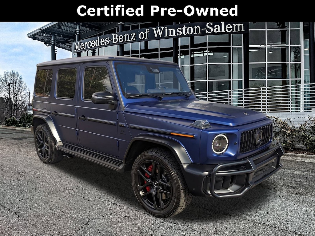 Mercedes-Benz of Winston Salem is proud to present you with another True Market Priced Pre-Owned Vehicle. This 2025 Mercedes-Benz G-Class G 63 AMG® is loaded with the following Factory Options:18 Speakers, 4-Wheel Disc Brakes, ABS brakes, Adaptive suspension, Air Conditioning, Alloy wheels, AM/FM radio: SiriusXM, Android Auto®, Apple CarPlay®, Apple CarPlay®/Android Auto®, Auto High-beam Headlights, Auto tilt-away steering wheel, Auto-dimming door mirrors, Auto-dimming Rear-View mirror, Automatic temperature control, Bodyside moldings, Brake assist, Bumpers: body-color, Burmester® 3D Surround Sound System, Child-Seat-Sensing Airbag, Compass, Delay-off headlights, Driver door bin, Driver vanity mirror, Dual front impact airbags, Dual front side impact airbags, Electronic Stability Control, Emergency communication system: Mercedes-Benz Emergency Call Service, Exterior Parking Camera Rear, Front anti-roll bar, Front Bucket Seats, Front Center Armrest, Front dual zone A/C, Front reading lights, Front wheel independent suspension, Garage door transmitter: HomeLink, Genuine wood console insert, Genuine wood dashboard insert, Genuine wood door panel insert, Head restraints memory, Headlight cleaning, Heated door mirrors, Heated Front Seats, Heated front seats, Heated steering wheel, Illuminated entry, Knee airbag, Leather steering wheel, Low tire pressure warning, Memory seat, Nappa Leather Trim, Navigation system: MBUX, Occupant sensing airbag, Outside temperature display, Overhead airbag, Overhead console, Panic alarm, Passenger door bin, Passenger vanity mirror, Power adjustable front head restraints, Power door mirrors, Power driver seat, Power moonroof, Power passenger seat, Power steering, Power windows, Radio data system, Radio: NTG 7 MBUX Multimedia System, Rain sensing wipers, Rear air conditioning, Rear anti-roll bar, Rear fog lights, Rear reading lights, Rear seat center armrest, Rear side impact airbag, Rear window defroster, Rear window wiper, Remote keyless entry, Security system, SiriusXM Radio, Speed control, Speed-sensing steering, Split folding rear seat, Sport steering wheel, Steering wheel memory, Steering wheel mounted audio controls, Tachometer, Telescoping steering wheel, Tilt steering wheel, Traction control, Trip computer, Turn signal indicator mirrors, Variably intermittent wipers, and Wheels: 20" AMG® 10-Spoke Alloy.