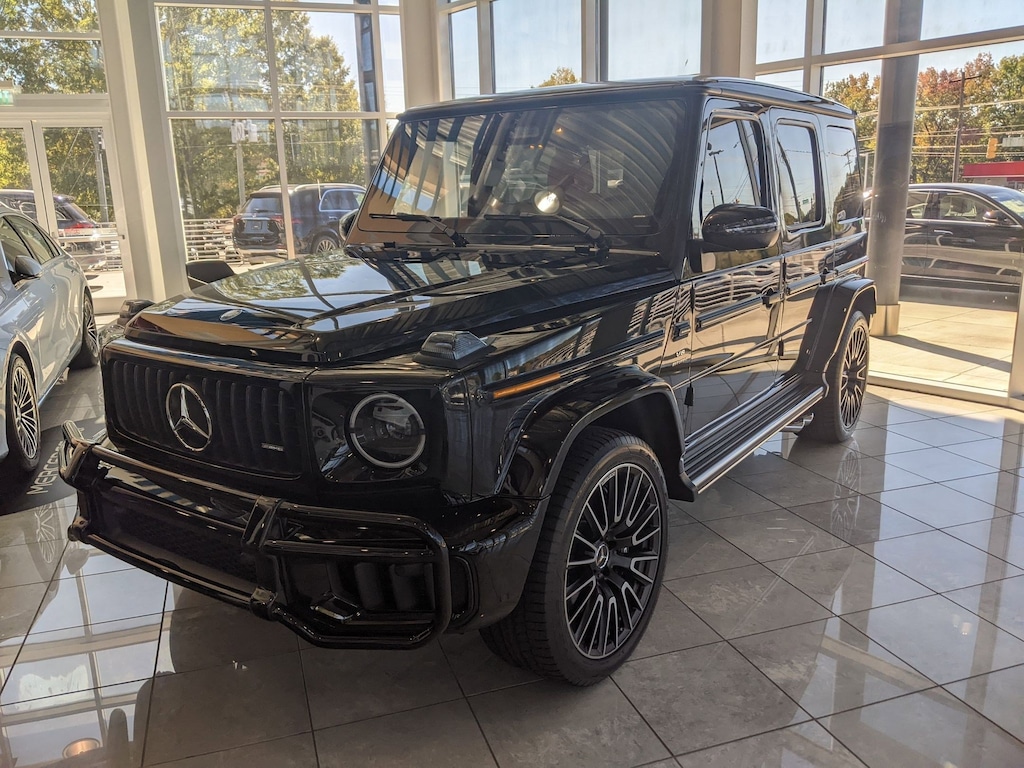 Mercedes-Benz of Winston Salem is proud to present you with another True Market Priced Pre-Owned Vehicle. This 2025 Mercedes-Benz G-Class G 63 AMG® is loaded with the following Factory Options:18 Speakers, 4-Wheel Disc Brakes, ABS brakes, Adaptive suspension, Air Conditioning, Alloy wheels, AM/FM radio: SiriusXM, Android Auto®, Apple CarPlay®, Apple CarPlay®/Android Auto®, Auto High-beam Headlights, Auto tilt-away steering wheel, Auto-dimming door mirrors, Auto-dimming Rear-View mirror, Automatic temperature control, Bodyside moldings, Brake assist, Bumpers: body-color, Burmester® 3D Surround Sound System, Child-Seat-Sensing Airbag, Compass, Delay-off headlights, Driver door bin, Driver vanity mirror, Dual front impact airbags, Dual front side impact airbags, Electronic Stability Control, Emergency communication system: Mercedes-Benz Emergency Call Service, Exterior Parking Camera Rear, Front anti-roll bar, Front Bucket Seats, Front Center Armrest, Front dual zone A/C, Front reading lights, Front wheel independent suspension, Garage door transmitter: HomeLink, Genuine wood console insert, Genuine wood dashboard insert, Genuine wood door panel insert, Head restraints memory, Headlight cleaning, Heated door mirrors, Heated Front Seats, Heated front seats, Heated steering wheel, Illuminated entry, Knee airbag, Leather steering wheel, Low tire pressure warning, Memory seat, Nappa Leather Trim, Navigation system: MBUX, Occupant sensing airbag, Outside temperature display, Overhead airbag, Overhead console, Panic alarm, Passenger door bin, Passenger vanity mirror, Power adjustable front head restraints, Power door mirrors, Power driver seat, Power moonroof, Power passenger seat, Power steering, Power windows, Radio data system, Radio: NTG 7 MBUX Multimedia System, Rain sensing wipers, Rear air conditioning, Rear anti-roll bar, Rear fog lights, Rear reading lights, Rear seat center armrest, Rear side impact airbag, Rear window defroster, Rear window wiper, Remote keyless entry, Security system, SiriusXM Radio, Speed control, Speed-sensing steering, Split folding rear seat, Sport steering wheel, Steering wheel memory, Steering wheel mounted audio controls, Tachometer, Telescoping steering wheel, Tilt steering wheel, Traction control, Trip computer, Turn signal indicator mirrors, Variably intermittent wipers, and Wheels: 20" AMG® 10-Spoke Alloy.