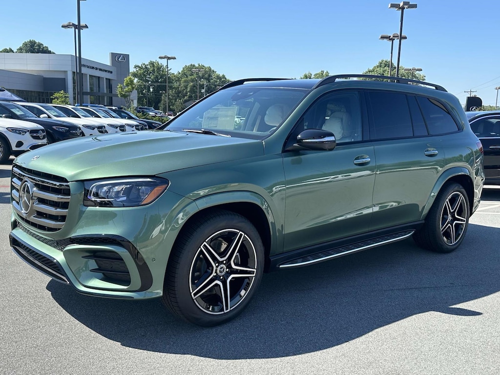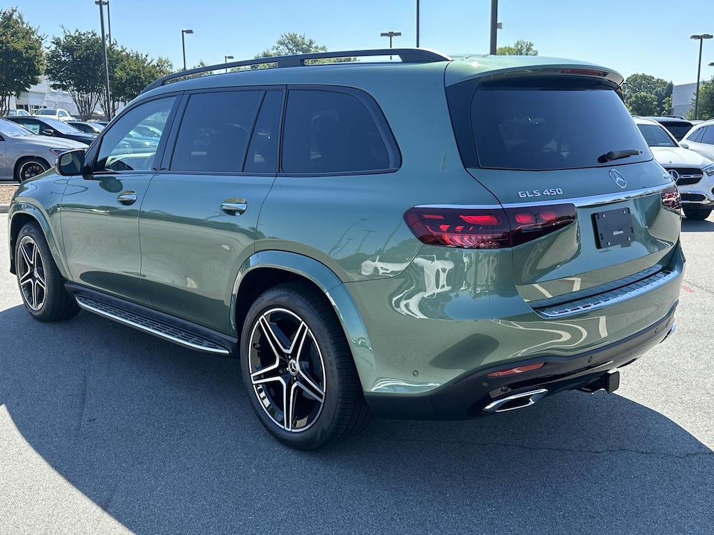 2025 Mercedes-Benz GLS 4D Sport Utility GLS 450 Mercedes-Benz of Greensboro is proud to present you with another True Market Priced Vehicle. This 2025 Mercedes-Benz GLS GLS 450 SUV is loaded with the following Factory Options:13 Speakers, 3rd row seats: split-bench, 4-Wheel Disc Brakes, 7-Seat Configuration, ABS brakes, Adaptive suspension, Air Conditioning, Alloy wheels, AM/FM radio: SiriusXM, Apple CarPlay®/Android Auto®, Auto High-beam Headlights, Auto tilt-away steering wheel, Auto-dimming door mirrors, Auto-dimming Rear-View mirror, Auto-leveling suspension, Automatic temperature control, Brake assist, Bumpers: body-color, Child-Seat-Sensing Airbag, Compass, Delay-off headlights, Driver door bin, Driver vanity mirror, Dual front impact airbags, Dual front side impact airbags, Electronic Stability Control, Emergency communication system: eCall Emergency System, Exterior Parking Camera Rear, Four wheel independent suspension, Front anti-roll bar, Front Bucket Seats, Front Center Armrest w/Storage, Front dual zone A/C, Front reading lights, Fully automatic headlights, Garage door transmitter: HomeLink, Head restraints memory, Heated and Ventilated Power Front Seats w/Memory, Heated door mirrors, Heated front seats, Illuminated entry, Knee airbag, Leather steering wheel, Low tire pressure warning, MB-Tex Upholstery, Memory seat, Navigation system: MB Navigation, Occupant sensing airbag, Outside temperature display, Overhead airbag, Overhead console, Panic alarm, Passenger door bin, Passenger vanity mirror, Power adjustable front head restraints, Power door mirrors, Power driver seat, Power Liftgate, Power moonroof: Panorama, Power passenger seat, Power steering, Power windows, Premium audio system: MBUX, Radio: Burmester® Surround Sound System, Rain sensing wipers, Rear air conditioning, Rear anti-roll bar, Rear dual zone A/C, Rear fog lights, Rear reading lights, Rear seat center armrest, Rear window defroster, Rear window wiper, Remote keyless entry, Security system, Speed control, Speed-sensing steering, Speed-Sensitive Wipers, Split folding rear seat, Spoiler, Steering wheel memory, Steering wheel mounted audio controls, Tachometer, Telescoping steering wheel, Tilt steering wheel, Traction control, Trip computer, Turn signal indicator mirrors, Variably intermittent wipers, Ventilated front seats, Weather band radio, and Wheels: 21' Triple 5-Spoke. MANUFAKTUR Signature Ireland Mid Green Metallic