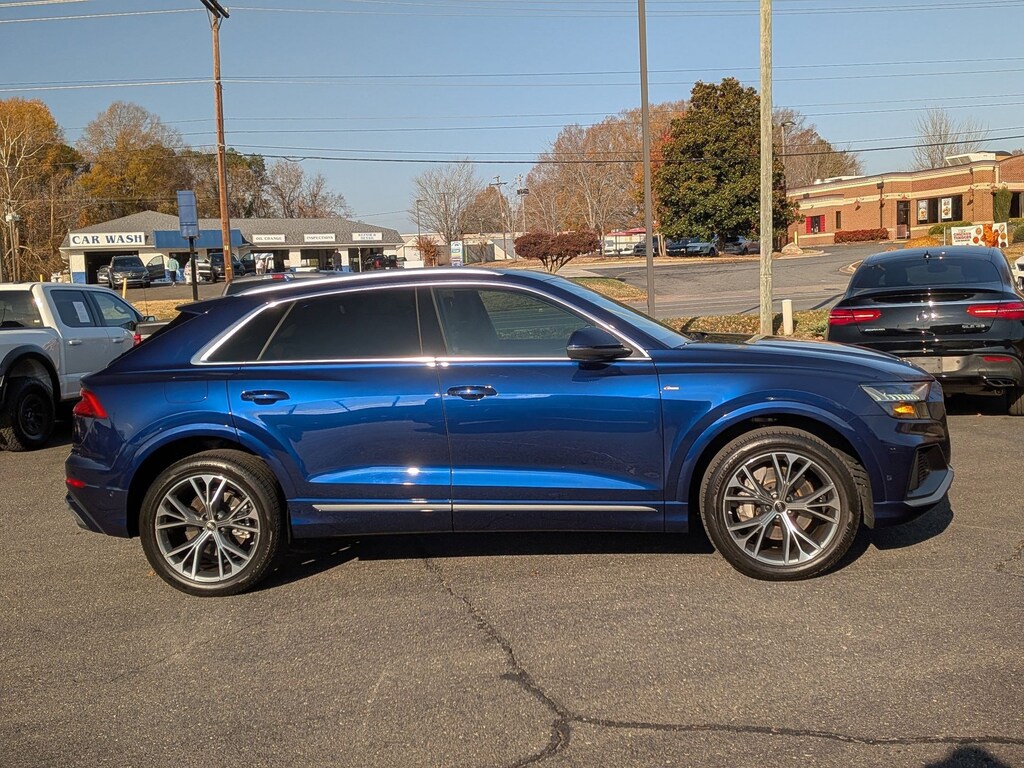 Mercedes-Benz of Winston Salem is proud to present you with another True Market Priced Pre-Owned Vehicle. This 2023 Audi Q8 55 Premium Plus is loaded with the following Factory Options:10 Speakers, 4-Wheel Disc Brakes, ABS brakes, Adaptive suspension, Air Conditioning, Alloy wheels, AM/FM radio: SiriusXM, Auto High-beam Headlights, Auto-dimming door mirrors, Auto-dimming Rear-View mirror, Automatic temperature control, Axle Ratio: TBD, Brake assist, Bumpers: body-color, Compass, Delay-off headlights, Driver door bin, Driver vanity mirror, Dual front impact airbags, Dual front side impact airbags, Electronic Stability Control, Emergency communication system: Audi connect CARE, Exterior Parking Camera Rear, Four wheel independent suspension, Front anti-roll bar, Front Bucket Seats, Front Center Armrest, Front dual zone A/C, Front fog lights, Front reading lights, Fully automatic headlights, Garage door transmitter: HomeLink, Genuine wood door panel insert, Headlight cleaning, Heated door mirrors, Heated Front Bucket Seats, Heated front seats, Illuminated entry, Leather Seating Surfaces, Leather Shift Knob, Leather steering wheel, Low tire pressure warning, Memory seat, Navigation system: Audi MMI Navigation plus with Touch Response, Occupant sensing airbag, Outside temperature display, Overhead airbag, Overhead console, Panic alarm, Passenger door bin, Passenger vanity mirror, Power door mirrors, Power driver seat, Power Liftgate, Power moonroof: Panoramic, Power passenger seat, Power steering, Power windows, Radio data system, Radio: Audi MMI Nav Plus w/MMI Touch Response, Rain sensing wipers, Rear air conditioning, Rear anti-roll bar, Rear fog lights, Rear reading lights, Rear seat center armrest, Rear side impact airbag, Rear window defroster, Rear window wiper, Remote keyless entry, Security system, Speed control, Speed-sensing steering, Split folding rear seat, Spoiler, Steering wheel memory, Steering wheel mounted audio controls, Tachometer, Telescoping steering wheel, Tilt steering wheel, Traction control, Trip computer, Turn signal indicator mirrors, Variably intermittent wipers, and Wheels: 21" 5-Segment-Spoke Design.