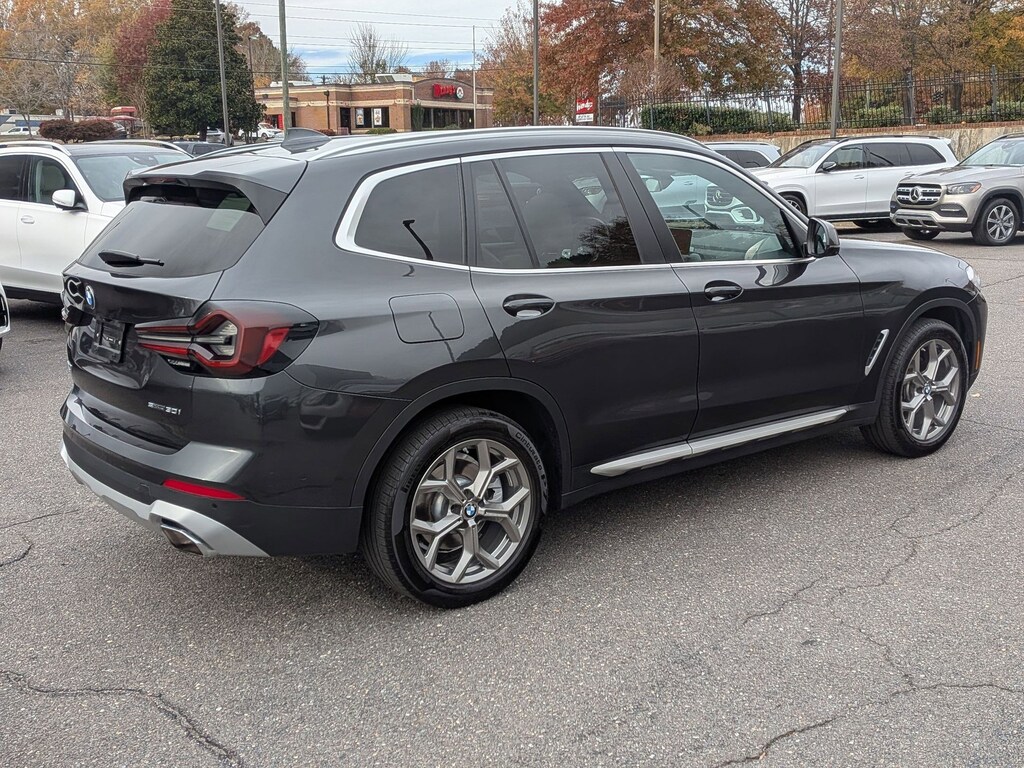 Mercedes-Benz of Winston Salem is proud to present you with another True Market Priced Pre-Owned Vehicle. This 2024 BMW X3 sDrive30i is loaded with the following Factory Options:Connected Package Pro, Parking Assistance Package (Active Park Distance Control, Parking Assistant Plus, Rear-View Camera, and Surround View w/3D View), Premium Package (Head-Up Display, Heated Front Seats, Heated Steering Wheel, Live Cockpit Pro w/Navigation, Lumbar Support, and Panoramic Moonroof), 8-Speed Automatic Sport, 12 Speakers, 3.385 Axle Ratio, 4-Wheel Disc Brakes, ABS brakes, Air Conditioning, Alloy wheels, AM/FM Radio, AM/FM radio: SiriusXM, Apple CarPlay & Android Auto Compatibility, Auto High-beam Headlights, Auto-dimming door mirrors, Auto-dimming Rear-View mirror, Automatic temperature control, BMW Assist eCall, BMW TeleServices, Brake assist, Bumpers: body-color, Comfort Access Keyless Entry, ConnectedDrive Services, Delay-off headlights, Driver door bin, Driver vanity mirror, Dual front impact airbags, Dual front side impact airbags, Electronic Stability Control, Emergency communication system: BMW Assist eCall, Enhanced USB & Bluetooth w/Smartphone Integration, Exterior Parking Camera Rear, Fine Wood Open-Pored Ash Grain Trim, Four wheel independent suspension, Front anti-roll bar, Front Bucket Seats, Front Center Armrest, Front dual zone A/C, Front reading lights, Fully automatic headlights, Garage door transmitter, Genuine wood dashboard insert, Genuine wood door panel insert, harman/kardon Surround Sound System, Heated door mirrors, Hi-Fi Sound System, Illuminated entry, Knee airbag, Leather steering wheel, Low tire pressure warning, Memory seat, Navigation, Navigation System, Occupant sensing airbag, Outside temperature display, Overhead airbag, Panic alarm, Passenger door bin, Passenger vanity mirror, Perforated SensaTec Upholstery, Power door mirrors, Power driver seat, Power Front Seats, Power Liftgate, Power passenger seat, Power steering, Power windows, Radio data system, Rain sensing wipers, Rear air conditioning, Rear anti-roll bar, Rear reading lights, Rear seat center armrest, Rear window defroster, Rear window wiper, Remote Engine Start, Remote keyless entry, Security system, SiriusXM w/360L & 1 Yr Platinum Plan Subscription, Speed control, Speed-sensing steering, Speed-Sensitive Wipers, Split folding rear seat, Spoiler, Sport Seats, Sport steering wheel, Steering wheel mounted audio controls, Tachometer, Telescoping steering wheel, Tilt steering wheel, Traction control, Trip computer, Turn signal indicator mirrors, Variably intermittent wipers, Wheels: 19" x 7.5" Y-Spoke (Style 693), and WiFi Hotspot. 8-Speed Automatic Sport.