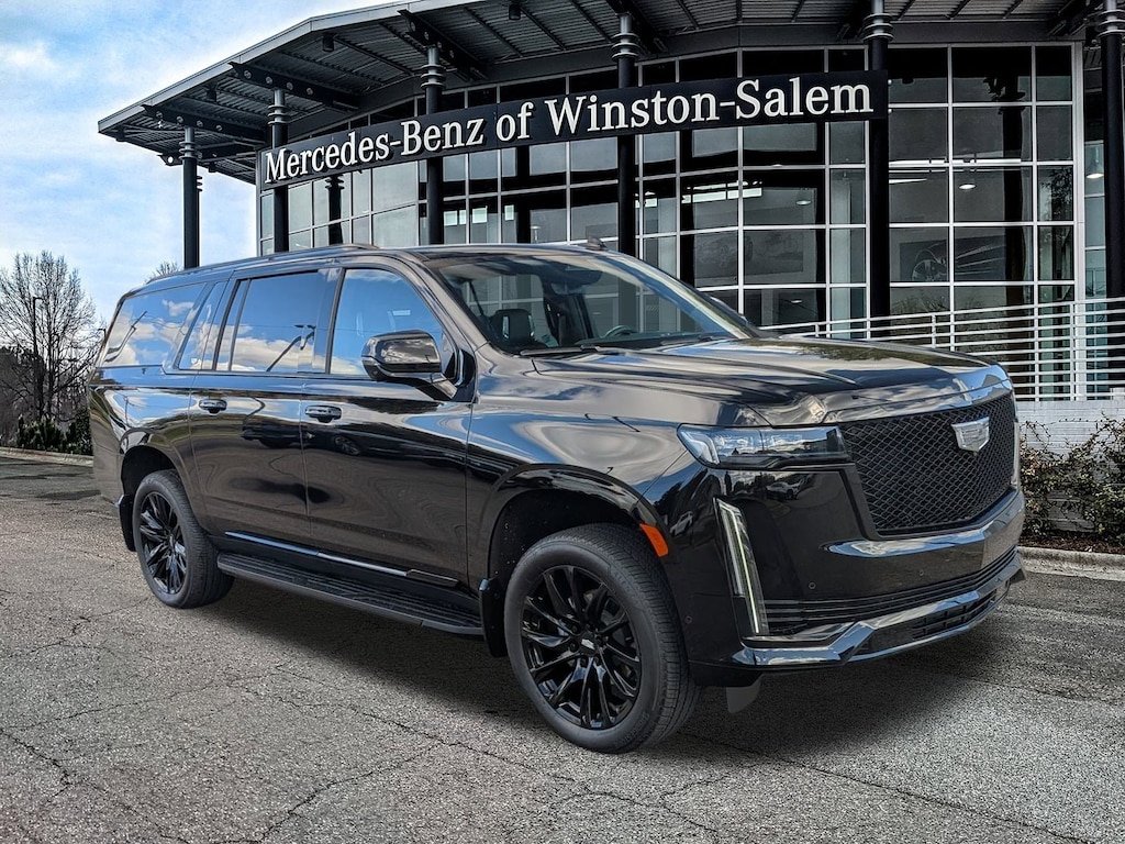 Mercedes-Benz of Winston Salem is proud to present you with another True Market Priced Pre-Owned Vehicle. This 2023 Cadillac Escalade ESV Sport Platinum is loaded with the following Factory Options:Heavy-Duty Trailering Package (2-Speed Active Transfer Case, Extra Capacity Cooling System, Trailer Tire Pressure Monitoring System, Trailering Assist Guidelines, and Wired Auxiliary Trailer Camera (LPO)), Onyx Package (LPO) (Gloss Black Escalade Nameplate (LPO), Monochrome Cadillac Emblems (LPO), Wheels: 22" 12-Spoke Gloss Black Alloy (LPO), and Wheels: 22" Interim (LPO)), Preferred Equipment Group 1SH (Adaptive Cruise Control, AKG Studio Reference 36-Speaker Audio System, Automatic Seat Belt Tightening, Body-Color Door Handles, Door Lock & Latch Shields, Electronic Limited-Slip Differential, Enhanced Automatic Emergency Braking, Enhanced Automatic Parking Assist, Floor Console w/Covered Storage, Front Auxiliary 12-volt Power Outlet, Glass Breakage Sensor, Heated & Ventilated Driver & Front Passenger Seats, Hitch Guidance w/Hitch View, Integrated Trailer Brake Controller, Platinum Interior Trim, Power Lumbar Massage Driver Seat, Power Lumbar Massage Front Passenger Seat, Power Panoramic Tilt-Sliding Sunroof, Rear Camera Mirror, Rear Camera Mirror Washer, Rear Cross Traffic Alert, Rear Seat Entertainment System, Reconfigurable Full-Color Head-Up Display, Reverse Automatic Braking, Running Board Assist Steps, Smart Trailer Integration Indicator, Theft-Deterrent Alarm System, Trailer Side Blind Zone Alert, Vehicle Inclination Sensor, and Vehicle Interior Movement Sensor), Touring Package (Air Ride Adaptive Suspension, Illuminating Front & Rear Sill Plates, and Soft Closing Front & Rear Doors), AWD, 16.9" Diagonal OLED Infotainment Screen, 2-Presets Memory For Driver Seat Adjuster, 3 Years of OnStar & Connected Services Plan, 3.23 Axle Ratio, 3rd row seats: split-bench, 4-Way Power Driver Lumbar Seat Adjuster, 4-Way Power Front Passenger Lumbar Seat Adjuster, 4-Wheel Disc Brakes, 8-Way Power Driver Seat Adjuster, 8-Way Power Front Passenger Seat Adjuster, A/V remote, ABS brakes, Adaptive suspension, Air Conditioning, Alloy wheels, AM/FM radio: SiriusXM with 360L, Apple CarPlay/Android Auto, Audio memory, Auto High-beam Headlights, Auto tilt-away steering wheel, Auto-dimming door mirrors, Automatic temperature control, Brake assist, Bumpers: body-color, Compass, Cooled Console w/Covered Storage, Delay-off headlights, Door auto-latch, Driver door bin, Driver vanity mirror, Dual front impact airbags, Dual front side impact airbags, Electronic Stability Control, Emergency communication system: OnStar and Cadillac connected services capable, Exterior Parking Camera Rear, Four wheel independent suspension, Front anti-roll bar, Front Bucket Seats, Front Center Armrest w/Storage, Front dual zone A/C, Front reading lights, Full Semi-Aniline Leather Seat Trim, Fully automatic headlights, Garage door transmitter, Genuine wood console insert, Genuine wood dashboard insert, Genuine wood door panel insert, HD Radio, Headphones, Heads-Up Display, Heated door mirrors, Heated Driver & Front Passenger Seats, Heated front seats, Heated rear seats, Heated steering wheel, Illuminated entry, Leather steering wheel, Low tire pressure warning, Magnetic Ride Control Suspension, Memory seat, Navigation System, Night Vision, Not Equipped w/2nd Row Express-Up Window Control, Occupant sensing airbag, Outside temperature display, Overhead airbag, Overhead console, Panic alarm, Passenger door bin, Passenger vanity mirror, Power door mirrors, Power driver seat, Power Liftgate, Power moonroof, Power passenger seat, Power steering, Power windows, Radio data system, Radio: AM/FM w/Navigation, Rain sensing wipers, Rear air conditioning, Rear anti-roll bar, Rear audio controls, Rear reading lights, Rear window defroster, Rear window wiper, Remote keyless entry, Security system, SiriusXM w/3