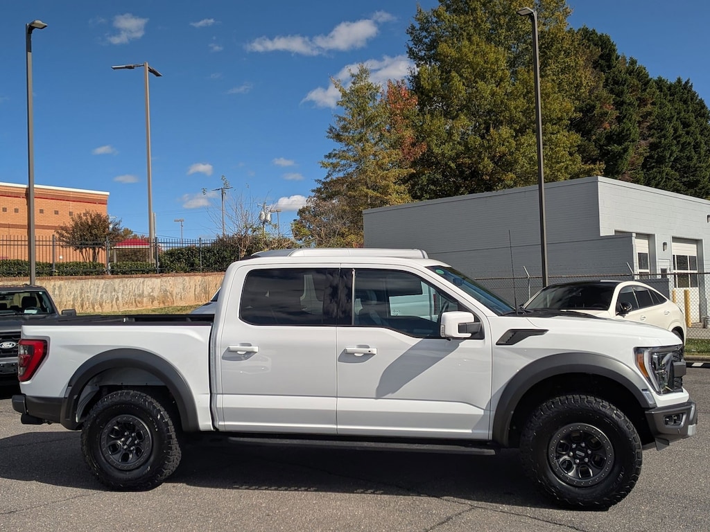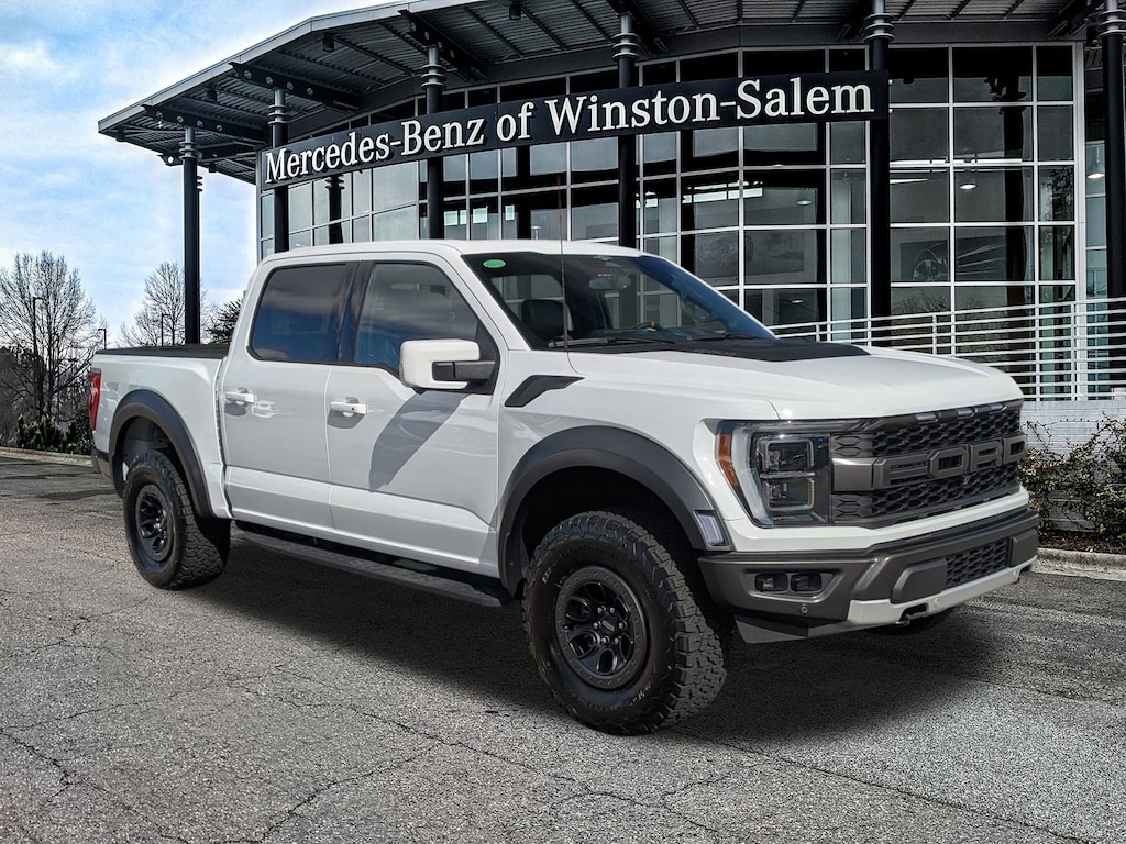 Mercedes-Benz of Winston Salem is proud to present you with another True Market Priced Pre-Owned Vehicle. This 2023 Ford F-150 Raptor is loaded with the following Factory Options:Equipment Group 801A Standard, GVWR: 7,300 lbs Payload Package, Moonroof & Tailgate (Power Tailgate and Twin Panel Moonroof), Raptor Carbon Fiber Package, 4WD, 17" Cast Aluminum Wheels, 17" Forged Aluminum Bead-Lock Capable Wheels, 18 Speakers, 4-Wheel Disc Brakes, ABS brakes, Adaptive suspension, Adjustable pedals, Air Conditioning, Alloy wheels, AM/FM radio: SiriusXM with 360L, Auto High-beam Headlights, Auto tilt-away steering wheel, Auto-dimming door mirrors, Auto-dimming Rear-View mirror, Automatic temperature control, Brake assist, Bumpers: body-color, Compass, Delay-off headlights, Driver door bin, Driver vanity mirror, Dual front impact airbags, Dual front side impact airbags, Electronic Locking w/4.10 Axle Ratio, Electronic Stability Control, Emergency communication system, Exterior Parking Camera Rear, Front anti-roll bar, Front Bucket Seats, Front Center Armrest, Front dual zone A/C, Front fog lights, Front License Plate Bracket, Front reading lights, Front wheel independent suspension, Fully automatic headlights, Garage door transmitter, Heated door mirrors, Heated front seats, Heated rear seats, Heated steering wheel, Illuminated entry, Inclination/Intrusion Sensor Removal, Lane Departure Warning System, Leather Trim Seats w/Heated 2nd Row, Low tire pressure warning, Memory seat, Navigation system: Connected Navigation, Occupant sensing airbag, Outside temperature display, Overhead airbag, Overhead console, Panic alarm, Partitioned Lockable Fold-Flat Storage, Passenger door bin, Passenger vanity mirror, Pedal memory, Power door mirrors, Power driver seat, Power passenger seat, Power steering, Power windows, Pro Power Onboard - 2KW, Radio data system, Radio: B&O Unleashed Sound System by Bang & Olufsen, Rain sensing wipers, Rear reading lights, Rear step bumper, Rear window defroster, Remote keyless entry, Security system, Speed control, Speed-sensing steering, Split folding rear seat, Steering wheel memory, Steering wheel mounted audio controls, SYNC 4 w/Enhanced Voice Recognition, Tachometer, Telescoping steering wheel, Tilt steering wheel, Tough Bed Spray-In Bedliner, Traction control, Trip computer, Turn signal indicator mirrors, Variably intermittent wipers, and Ventilated front seats. 4WD.