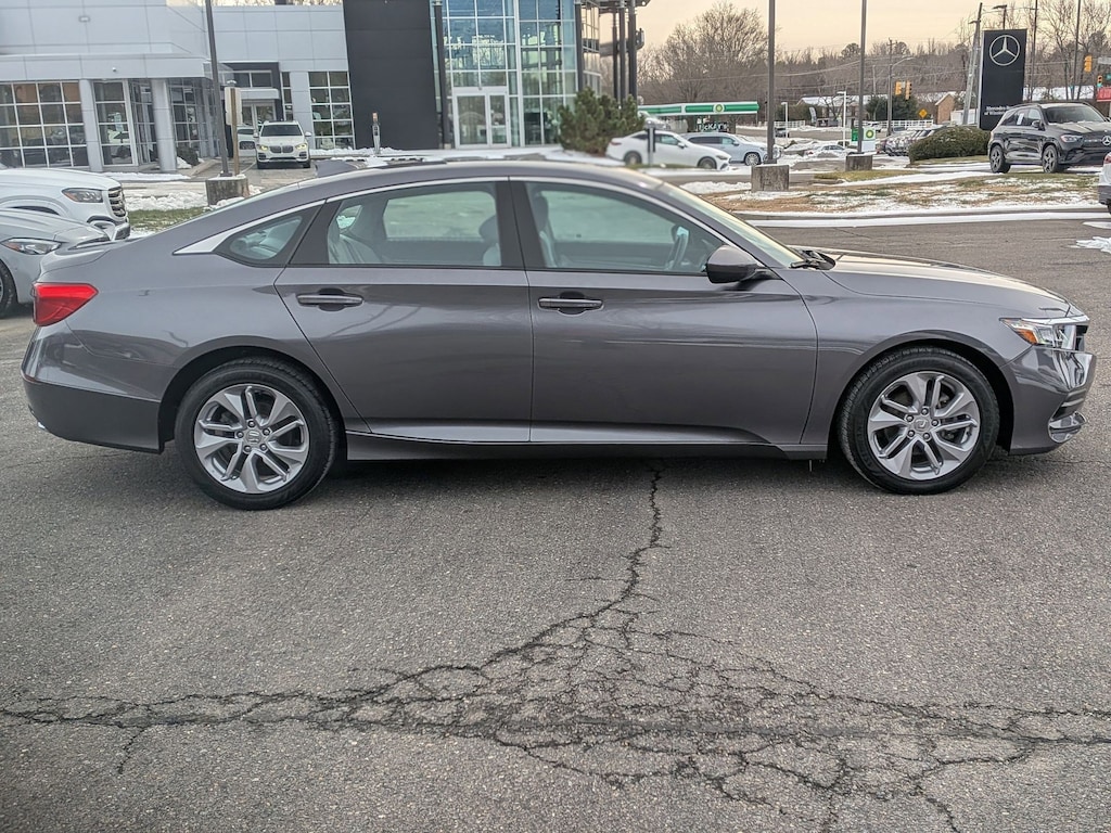Mercedes-Benz of Winston Salem is proud to present you with another True Market Priced Pre-Owned Vehicle. This 2018 Honda Accord LX is loaded with the following Factory Options:Cloth, 4 Speakers, 4-Wheel Disc Brakes, ABS brakes, Air Conditioning, Alloy wheels, AM/FM radio, Auto High-beam Headlights, Automatic temperature control, Brake assist, Bumpers: body-color, Cloth Seat Trim, Delay-off headlights, Driver door bin, Driver vanity mirror, Dual front impact airbags, Dual front side impact airbags, Electronic Stability Control, Exterior Parking Camera Rear, Four wheel independent suspension, Front anti-roll bar, Front Bucket Seats, Front Center Armrest, Front dual zone A/C, Front reading lights, Fully automatic headlights, Illuminated entry, Knee airbag, Low tire pressure warning, Occupant sensing airbag, Outside temperature display, Overhead airbag, Overhead console, Panic alarm, Passenger door bin, Passenger vanity mirror, Power door mirrors, Power steering, Power windows, Radio data system, Radio: 160-Watt AM/FM Audio System, Rear anti-roll bar, Rear seat center armrest, Rear window defroster, Remote keyless entry, Security system, Speed control, Speed-sensing steering, Speed-Sensitive Wipers, Steering wheel mounted audio controls, Tachometer, Telescoping steering wheel, Tilt steering wheel, Traction control, Trip computer, Variably intermittent wipers, and Wheels: 17" Silver-Painted Alloy. Cloth.